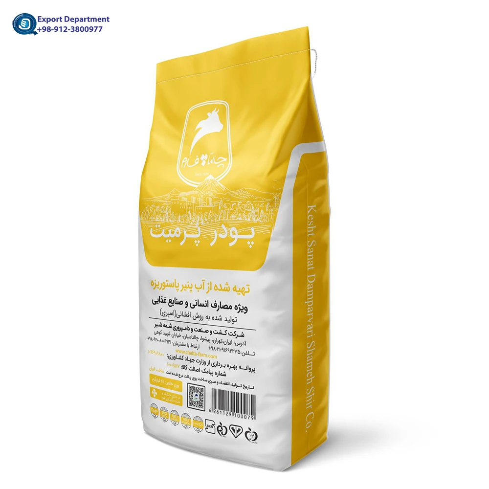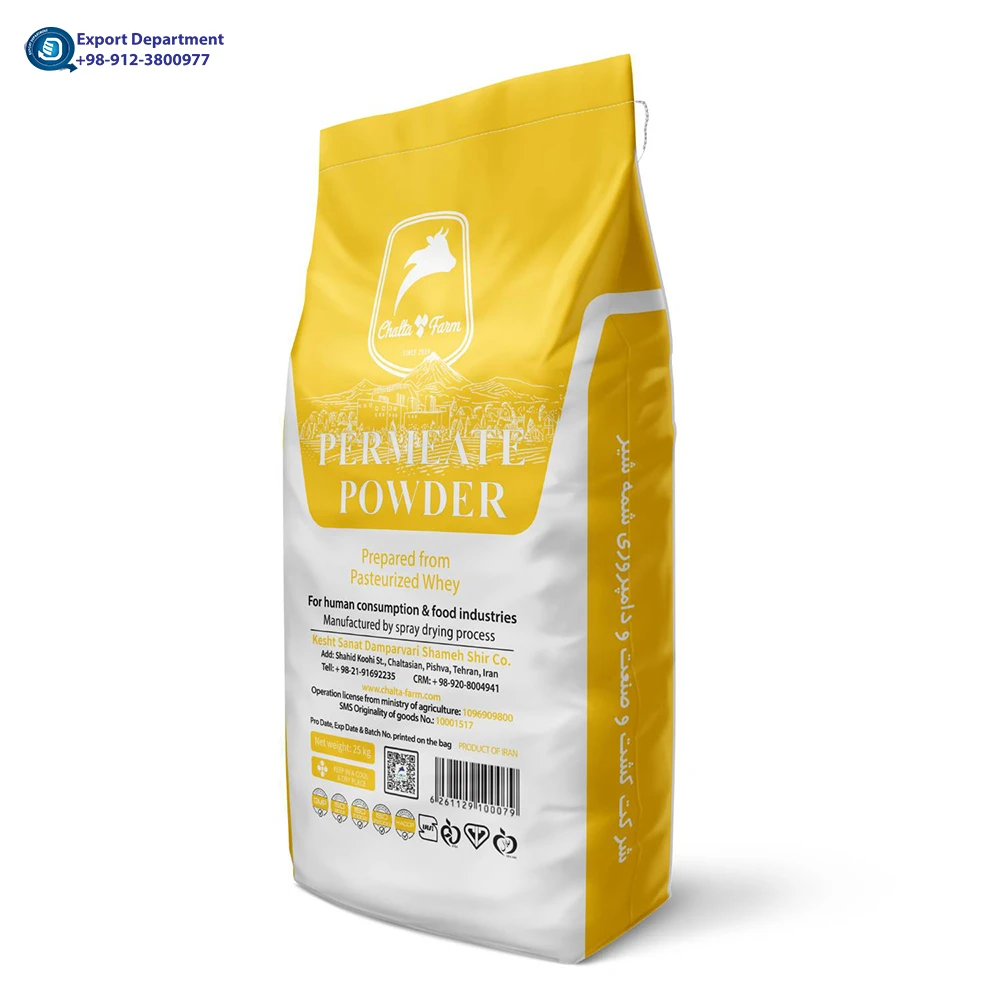 Chaltafarm Whey Permeate Powder (WP) is produced in Iran and exported directly from the country. Permeate powder | Supply and export from Iran | Chaltafarm Dairy The raw material has not contained any substances, materials or biological agents in amounts which may represent a risk to consumer health. Chaltafarm Permeate Powder, obtained by nanofiltration, has a reduced salt content, making it suitable for use in the baby food and chocolate industries.